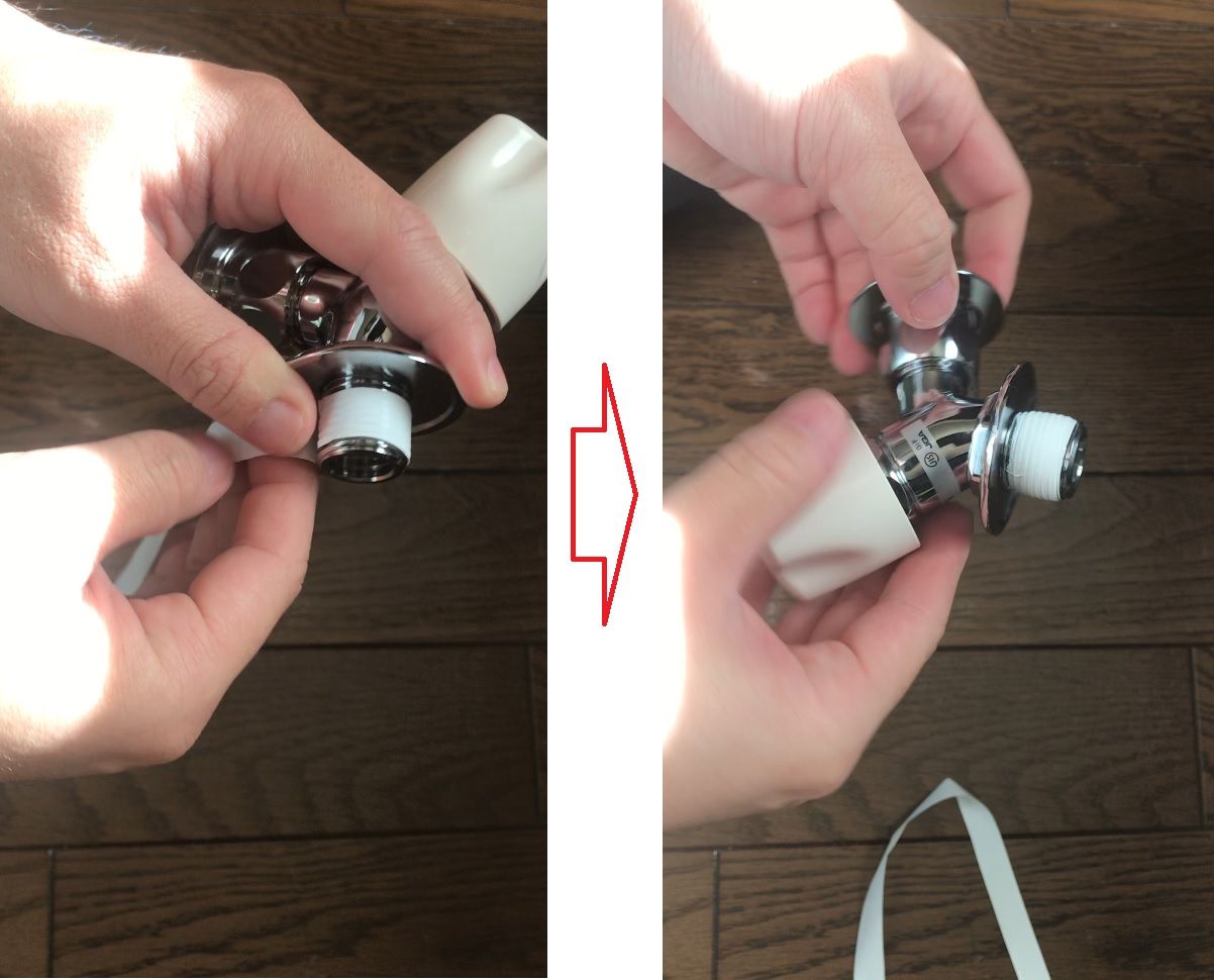 ③巻いたあとに時計回りにググっと指で押さえてシールテープを押し付ける
