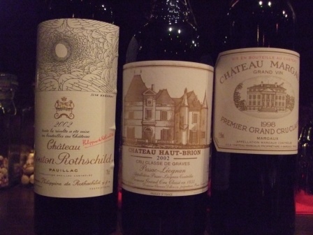 フランスのワイン名醸地、ボルドー地方のメドック地区には、シャトー(ワインの作り手)の格付け制度があります。メドック地区の中でも、特に優れた60余りのシャトーが一級から五級に格付けされているのですが、この内、一級に名前を連ねているシャトーは、シャトー・ラフィット・ロートシルトシャトー・ラトゥールシャトー・オー・ブリオンシャトー・マルゴーシャトー・ムートン・ロートシルトの5つです。いわゆる「5大シャトー」と呼ばれるワインですね。(オー・ブリオンだけはメドック地区ではなく、グラーヴ地区のシャトーですが、品質の高さから、特別にこの格付けに入れられています。)5大シャトーは、当然、かなり高価なワインですが、最近のユーロ安と不景気が、ワイン市場にも影響を及ぼし、今年に入ってから「価格破壊」と言っても良いくらい、安く買える物が出始めてきました。写真は、左から、ムートンオー・ブリオンマルゴーです。一月に輸入業者(信頼出来るインポーターさんです。)から届いたリストが余りにも安い値段だったので、思い切って買ってしまいました(^^;ムートンとオー・ブリオンは'02年で、飲み頃には程遠いのですが、マルゴーは'98年なので、そろそろ飲み頃に入り始める頃でしょう。そういう訳で、このシャトー・マルゴー、ボトル\32,000で、お店で出そうと思います。一本限りの入荷なので、飲みたい方は、早い者勝ちですよっ! ちなみに小売価格は下記でチェック出来ます・・・。【30%OFF★円高還元特価】シャトー・マルゴー [1998]年≪1998年ボルドー・ベスト・ワイン≫送料サービス【ワイン】シャトー オーブリオン2002 750mlパーカーポイント93点![2002] シャトー・ムートン・ロートシルト 750ml[2002] Chateau Mouton Rothschild 750mlBarW 次回のライブ!3/1(日)スミ☆アヤコ(ボーカル)藤谷典史(ギター)三浦剛司(ウッドベース)オープン 19:00スタート 20:00(2ステージ)チャージ \2000ご予約はBarW03 3375 6061までぐるなび