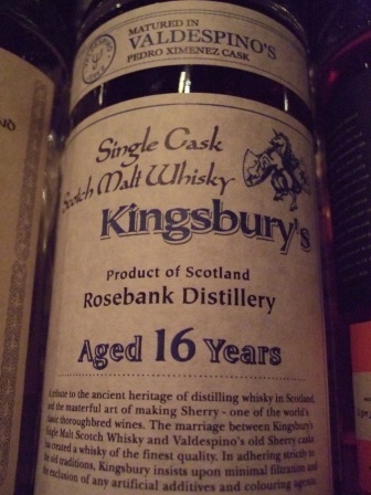 写真は、最近、入手したキングスバリー社のローズバンク16年です。ローズバンクは、すでに閉鎖されている、スコットランド ローランド地方の蒸留所です。このボトルは、有名なシェリーメーカーの、バルデスピノ社の、甘口シェリー、ペドロヒメネスの樽で熟成されています。シェリー樽熟成の特徴である、赤味がかった、深い琥珀色が美しいですね。味も、しっかりと甘みがあって、まろやかなタイプです。ローランド モルトの穏やかな味わいは、疲れた一日の寝酒にぴったりですね(^^)【ブリティッシュフェア】キングスバリーKSCローズバンク16年 ペドロヒメネスカスクバルデスピノ・エルカンダド(ペドロヒメネス) 18% (750ml)【あす楽対応_関東】【あす楽対応_甲信越】【あす楽対応_北陸】【あす楽対応_東海】【あす楽対応_近畿】【あす楽対応_中国】【あす楽対応_四国】代々木BarW 今後のライブ予定2/15(日)出演river&tree田中晃二(ピアノ)鈴木大樹(ギター)スペシャルゲスト富田礼子(ボーカル)オープン 18:00スタート 19:00(2ステージ)チャージ \20003/1(日)スミ☆アヤコ(ボーカル)藤谷典史(ギター)三浦剛司(ウッドベース)オープン 19:00スタート 20:00(2ステージ)チャージ \2000ご予約はBarW03 3375 6061までぐるなび