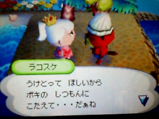 ひっさびさに、ラコスケ登場もぉ、ラコちゃんたら、やっとねゆうこはずっと、ホタテを用意して、あなたを待っていたのよボ、ボキって…ジャジャーンついに金のオノをGET~~そして、今日の通信~~マリィの村へ初上陸ってか、マリィが顔だけm(_ _)mゴメンヨ~とっても、可愛いマリィたんのたのしい村でちたまた、遊びに行くよぉぉ~ぉ次は、ゆうくんの村へ最近、女に目覚めたゆうくんに、いちごソーダな服をさっそく着替えてもらったら…あ~!!男の子が着るとワンピにならないんだったレオタードみたいと2人で大笑いo((*^▽^*))o アハハ~そして、ゆうくんの夏の村で、ムシ取り&魚釣りさせていただきニジイロクワガタとか、シュモクザメとか、初めて見て、超感動ゆうくん、ありがとう