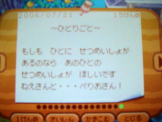 今日は、まだ捕まえてなかった、プラチナコガネをgetで、フフフンって感じで、せっせと博物館に持って行ったら…フータさんの説明にびっくし本物のプラチナよりも高価なのプラチナ好きのゆうこなだけに、すかさず反応しちゃってと言っても、リアルで捕まえに行くわけにもいかないしねぇ。でも、どこにいるのかな…けっこうマジだったりして(^_^;)ポチっとしていただけると、助かります!!