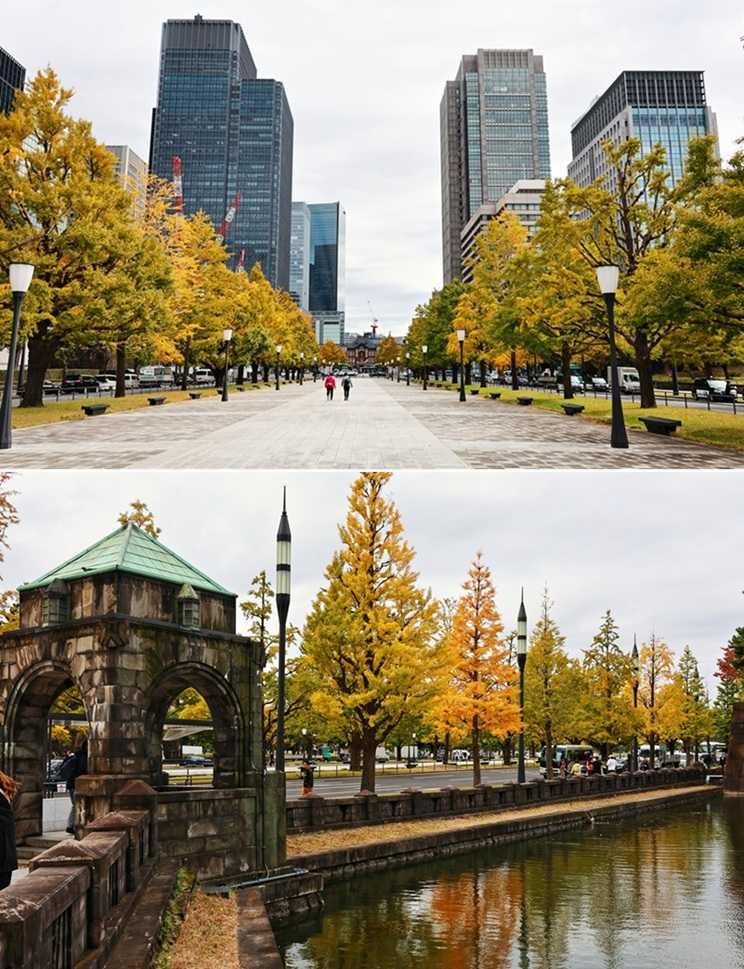 東京駅丸の内中央広場にある、ケヤキ並木の一部が赤く色づいていた。イチョウ並木を安全に見られる 行幸通り 。東京駅と皇居を一直線に結び、幅広い石舗装道路。信任状捧呈式の馬車列が稀に通る。黄葉時期が早いせいもあり、皇居観光を終えた外国観光客の姿も少なかった。