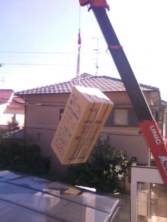 8年も使っていた冷蔵庫がついに寿命が来ました。なので新しい冷蔵庫に変える事になったのは良いものの、サイズが前より大きくてリビングのドアから入らないと言う非常事態。と言う事でクレーン車で窓から搬入する事に。画像は新冷蔵庫をクレーン車で持ち上げている所。流石はプロ。ベランダの手摺を傷つける事無く手際良くベランダから入れてくれました。今までお世話になった冷蔵庫にお別れと感謝を込めて。つかどんだけ持ち上がるんだあのクレーン車wwようこそ我が家へ。無事新しい冷蔵庫が運び込まれました。かかった時間は30分ちょい。流石プロ。バイトの時間と被りそうだったけど、何とか大丈夫でした。冷蔵庫の隣にあった食器棚の中身運び出しが大変だったー。