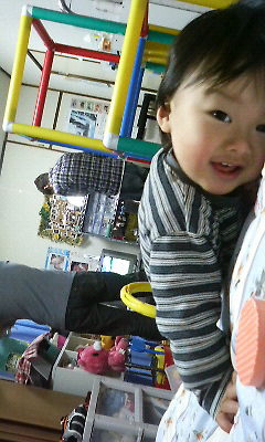 12月に入り、今年もあとわずかになりました。 時間が経つのって早いですね。この前「あけおめ~っす」 って言ってたばかりなのに・・・・もう年末です。 12月といえば、クリスマス 2○年間生きてきて、この時期は彼女がいない時期が多かった裕一郎です。 クリスマスの思い出はあまりいいものがありませんが、彼女とのイベント好きな私はいつもこの時期せつなくなっておりました。 買い物行ったり、会社の有線で流れているクリスマスの曲 聴いてるとこれまた切なくなりますね(私だけ??) そんなことはさておき(死) 10月に2歳になった長男「賢吾」 廊下をバタバタ、テーブルの上のものひっくり返す、おっもちゃをぶん投げる 毎日元気いっぱい動き回るいたづら小僧です。 はいはい、歩くのを平均より早くマスターした彼なんですが、言葉があまりしゃべれませんでした。 しかし2歳を過ぎてからものすごいスピードで言葉を話しています。 昨日の夜ビックリしたのが、じいじからもらった賢吾の携帯をおれのところにもってきました。 「パパ・・・じゅうえん。パパ・・・じゅう・・・えん」 パパに携帯を10円で売ろうとしているのです!! 「たけ~よ。ぼけ」 って違う 携帯を充電しろ!っていう意味でした。充電なんて教えてないのに・・・・・こいつ・・・すげ~ 最近、自分とかみさんでゆっくり言葉を教えてそれをいえるのはみてきましたが、 日常の会話の中でというか、あまり使わない言葉を言われたのはとても驚きです。 そのほかにも「ね~ね・・・これっ アニ??」(これ何?)「パパ、や~ね~」( パパろくでなし) 「じいじのくうま・・・・ふぃっと」(じいさんのクルマはフィット) 「まんまできたよ~」「おなかすいた~」←ご飯食べ終わったときにいいます(汗) その他いろいろな会話ができますが、最後に 「パパ、パチンコ~」 これをまじめに働いて帰ってきたときに言われるとつっこみたくなりますが、おもしろいのでよしとしましょう! 会話ができるようになると楽しいですね。