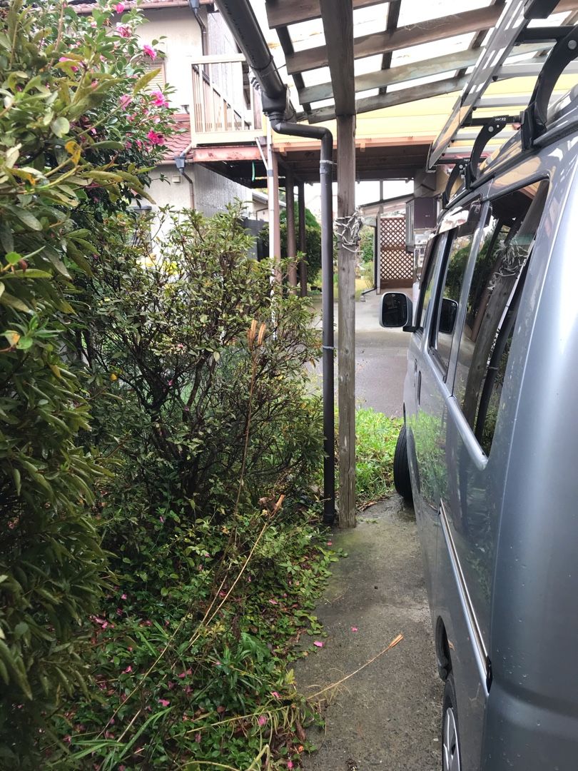 この庭にはなんとか一台分の駐車場しか無かったが庭木を伐採して2台分を確保する。