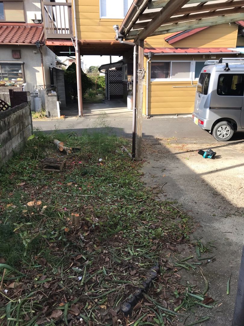 この後は除草剤まいて、枯れたところを熊手で掃除ってとこでキレイになると思われる。