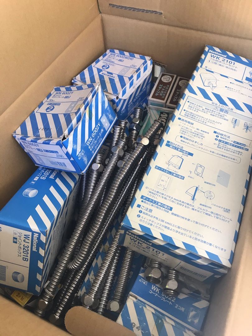 やぁ、僕だ。 日中は日が出るとポカポカだ。 今年はあっと言う間に冬が終わった気がする。 話は変わって先日、電気屋の友人からコンセントプレートやらシーリングソケットやらの電材をたくさん頂いた。 ボロ戸建て再生には地味にたくさん使う。 ありがたい。 型式は古いものばかりだが、家も古いので問題ない。 修繕する時に気をつけるのは、人の手が触れる箇所が綺麗だと印象が良い。 引き紐や、ドアノブ、 コンセントやスイッチなどは特に。 これまで再生する時は必ず、交換している。 知らない人の手垢がついていると不潔な印象を与えてしまう。 たとえ型式が古くとも新品であれば好印象となる。 見た目って大事だ。 今回頂いた電材も古いタイプのものばかりだが新品なので重宝します。ありがとう😊 日頃の行いだな、と悦にはいる。 でわでわ。
