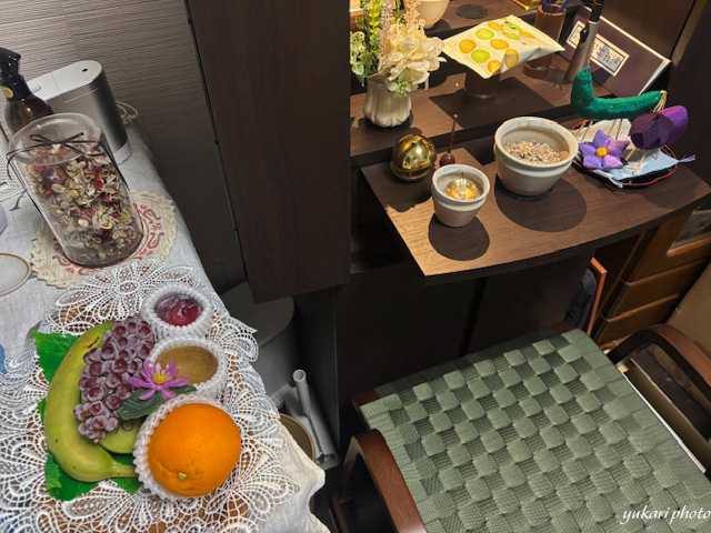 おはようございます。今年のお盆は、私が気管支炎になったせいで、簡素にしかお迎えの準備をすることができませんでした。そんな今年のお盆のしつらえです。お花は生花を買いに行けず。ちょうど少し前に買ったアーティシャルフラワーを飾りました。そして今年もちりめんの精霊馬を出しました。果物やビールやお酒はお供えできましたが、お野菜やほおずきは買いに行けずでした、、、。こちらを毎年飾っています。毎日、こちらの短いろうそくと香りが選べるお線香を使っています。今はラベンダーを使っています。日本酒はこちらをお供えしました。ビールは主人が好きなモルツを選びました。お供えの後に飲むのは主人ですから、、。母に習って、毎朝般若心経をお唱えしています。とても下手ですけど、、。意味を知って唱えたいからこちらも読みました。やっと気管支炎も治ってきたようで、咳も随分ましになりました。やはり吸入と薬が効きたのかな、、。今は、鼻水、咳、発熱の風邪が流行っているそうです。どうぞ皆さんもお気をつけください。#お盆最後まで読んでいただきありがとうございましたm(__)mこちらもよろしくお願いします↓↓↓インスタグラムはこちらのバナーより。お気軽に遊びに来てくださいね♪私の気になるもの、購入品を集めた「夢香里のROOM」です。にほんブログ村にほんブログ村にほんブログ村いつもご訪問&応援クリックありがとうございます。3つのカテゴリーに参加しています。よろしければ、どれか一つにクリックお願いします。