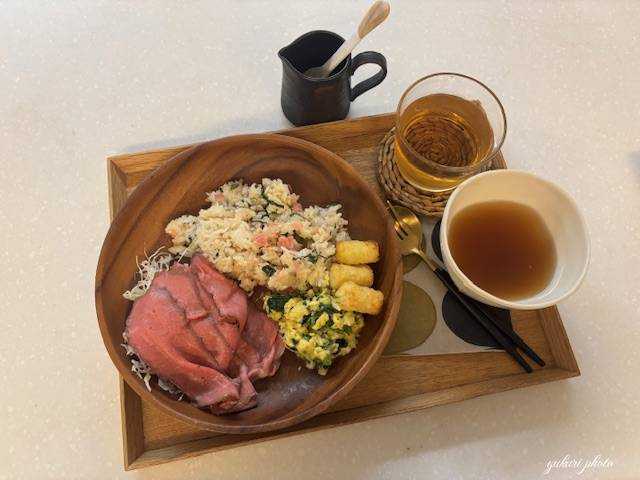 こんにちは。ようやく秋らしくなってきました。読書の秋、食欲の秋、スポーツの秋などなど、秋は過ごしやすいので色々楽しめそうですね。さて、最近は休日のサッカー観戦が食事の時間とかぶってしまいます。そんなわけで、サッカー観戦の日の夕ごはんは、テレビの前で応援しながら食べられるようにワンプレートにすることにしました。オリジナルには☆印をつけています。ある日は、☆にんにくチャーハン(にんにく、ベーコン、青じそ)、ローストビーフ、キャベツ、ほうれん草入りスクランブルエッグ、ハッシュポテト、コンソメスープにんにくチャーハンは我が家の定番メニューです。冷めても美味しいごはんです。また昨夜は、天津飯、四川風麻婆水餃子、生姜風味の水餃子、フリルレタス、☆中華スープ(玉ねぎ、人参、しめじ、わかめ、青ねぎ、白ごま)水餃子はOISIXさんのもので、黒酢でいただくととても美味しいです。臨醐山黒酢(900mL)【イチオシ】【内堀(うちぼり)】【無印良品 公式】アカシア 深皿約直径24×高さ5cm今週末にかけて、人間ドックに行ったり、友人がお泊りで遊びに来たりと何かとバタバタしそうです。なので、ブログの更新が滞るかもしれません(^^;お天気と体力が心配ですが、お出かけを楽しみたいと思います!!美味しいものや変わったものがたくさん♪#夕ごはん最後まで読んでいただきありがとうございましたm(__)mこちらもよろしくお願いします↓↓↓インスタグラムはこちらのバナーより。お気軽に遊びに来てくださいね♪私の気になるもの、購入品を集めた「夢香里のROOM」です。にほんブログ村にほんブログ村にほんブログ村いつもご訪問&応援クリックありがとうございます。3つのカテゴリーに参加しています。よろしければ、どれか一つにクリックお願いします。