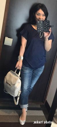 ネイビーコーデを基本に、ネックレスと足元をシルバーにしてみました。