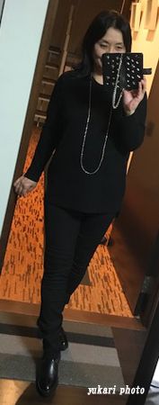 わずか一時間余りの飛行時間ですが、移動は楽なお洋服がいいので、ウエストゴムのワイドパンツを選びました。