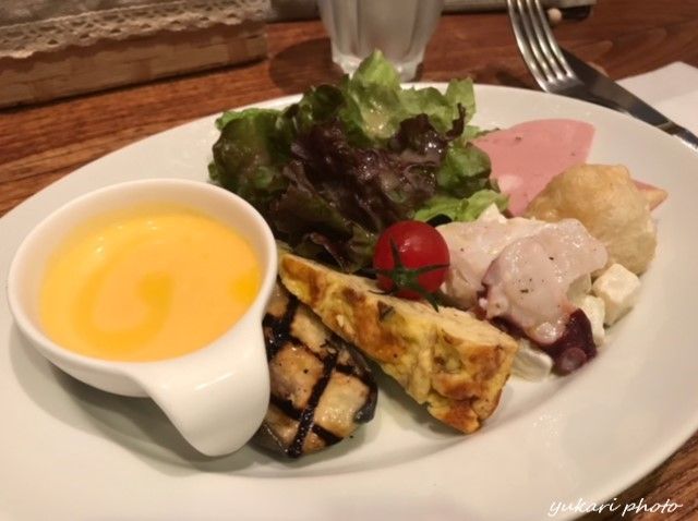 前菜も一皿の上に盛りだくさん。