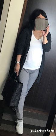 本当はスリムなスカートを合わせたかったのですが、少しきつくて・汗。