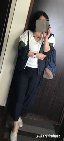 その中でお気に入りの一つだったのが、ネイビーのパンツに白いTシャツ、そしてグリーンのカーディガンのコーデでした。