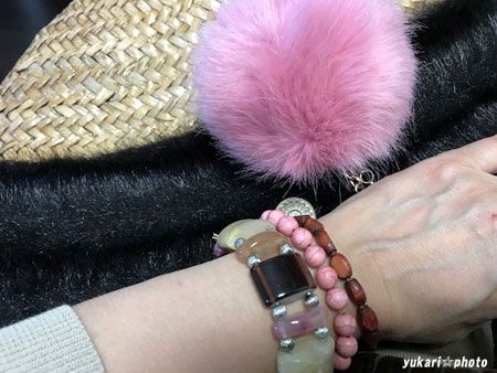 あまり使っていなかったピンクやベージュの色が入ったノーブランドのバングルがあったので、それらに合わせてみました。