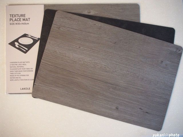 グレーのランチョンマットは我が家の黒いダイニングテーブルに合いそうです。