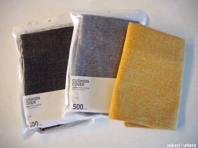 ワンコインのクッションカバーは3色買って並べようと思います。
