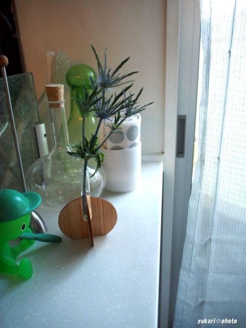 余ったのは小さな小さな一輪挿しにさして、キッチンカウンターに飾りました。
