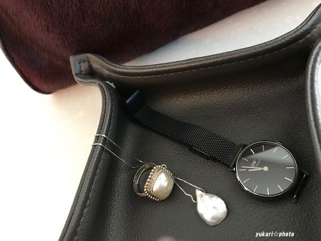 セーターの白いボタンに合わせて先日買った白い淡水パールのネックレスをつけていきました。
