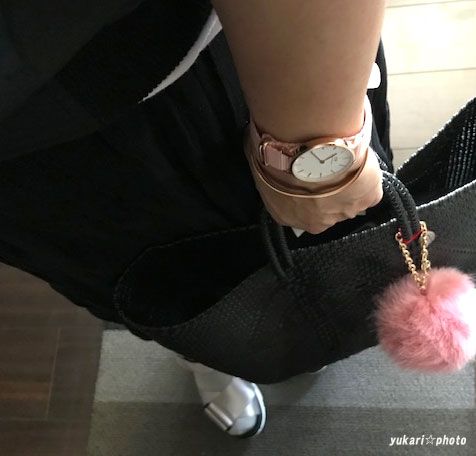 ブラックに淡い桜色の時計を合わせるとピンクがより際立つ気がします。