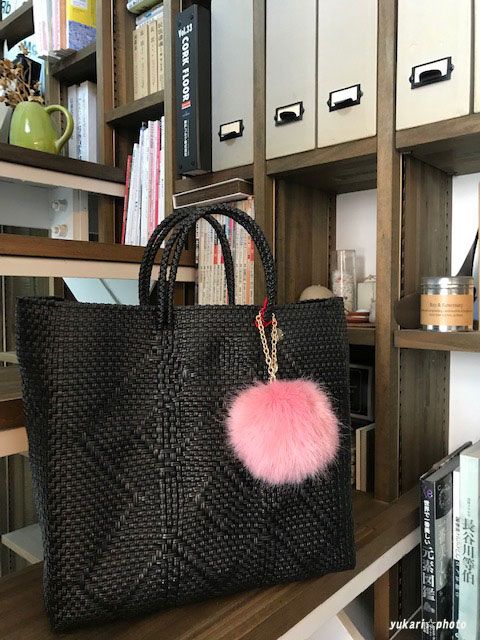 ブラックのメルカドバッグにピンクのチャームをつけてみました。