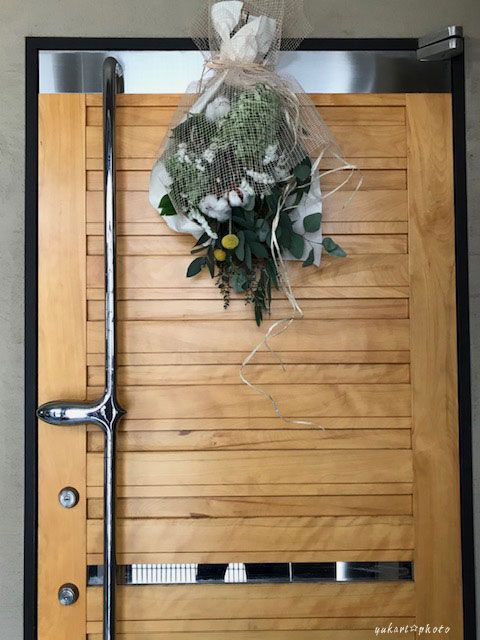 早速、玄関ドアに飾りました。