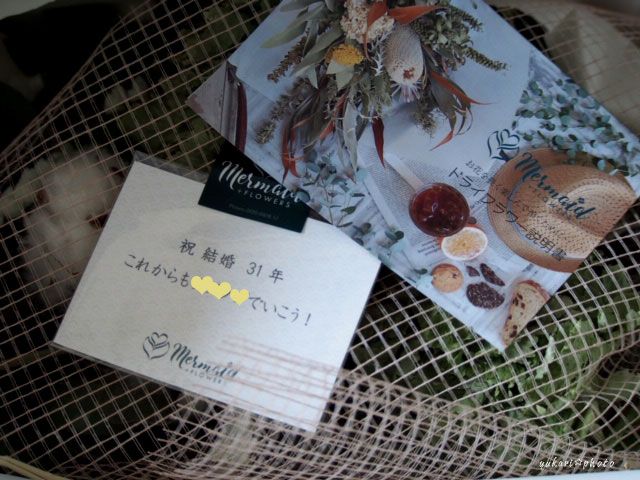 結婚記念日31年目のお祝いということで、夫がメッセージを添えてくれていました。
