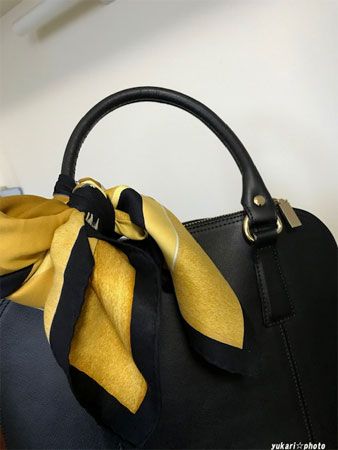 スカーフをこんな感じでバッグに巻くのも好きです。