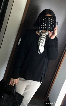 そしてイタリア製のモノトーンのシルクノスカーフを巻いて。