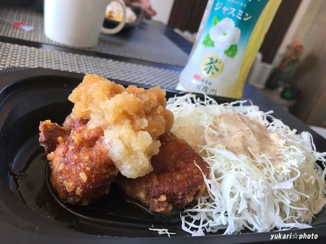 こちらの鶏のから揚げ弁当は夫と車で出かけたついでにテイクアウトしたもの。