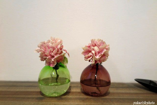 そこで小さな一輪挿しに短くなったカーネーションを活けなおしました。