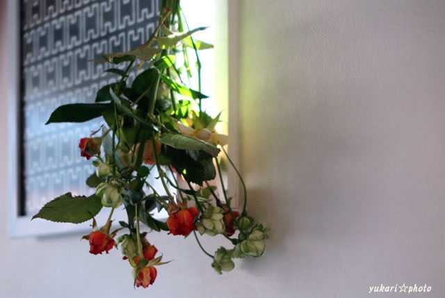 その前に、枯れかけのミニ薔薇をドライフラワーにしようと思い立ち、とりあえず吊るしました(^^;