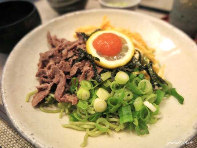 抹茶そばに牛肉?もみじおろし?と思いましたが、これが意外に美味しくて。。