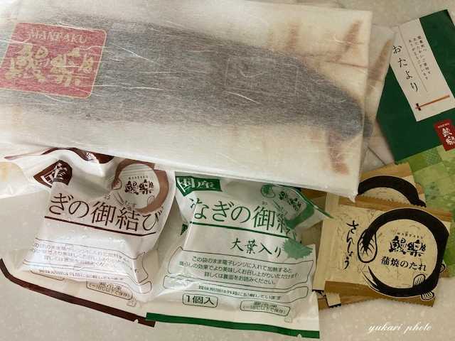 今回は、うなぎ5尾にプラスしてうなぎの御結びが2個ついてました。