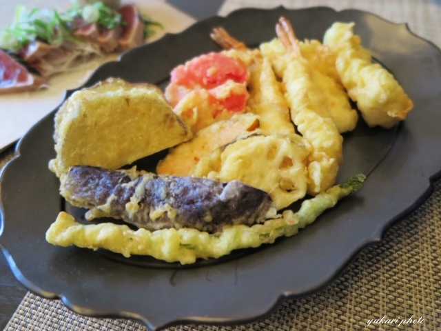 天ぷらを盛ったうつわは有田の横田勝郎さんのオーバル皿です。