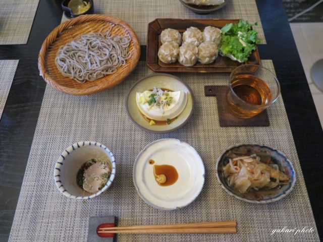 ​​ざるそば、焼売、わかさぎの南蛮漬け、湯葉豆腐(しらす、おろし生姜、青ねぎ)