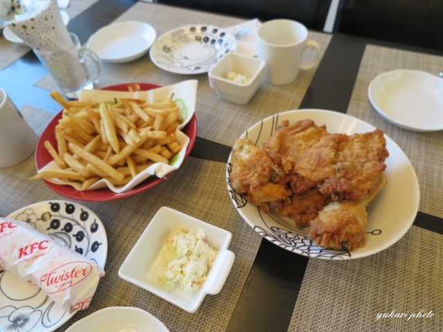 帰りにケンタッキーに寄って夕ごはんを調達しました。