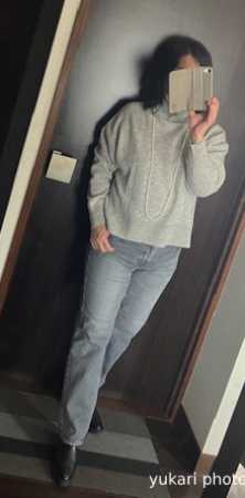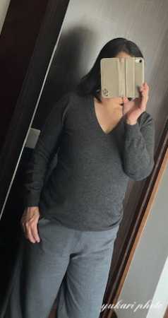 インにはもう何年も着ているユニクロのカシミアセーター。