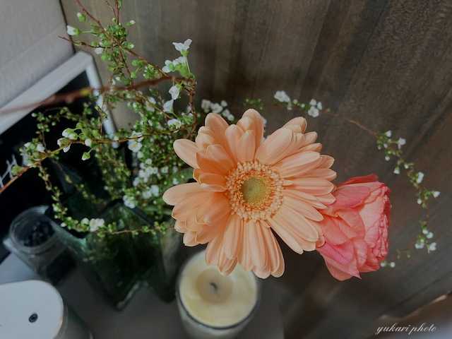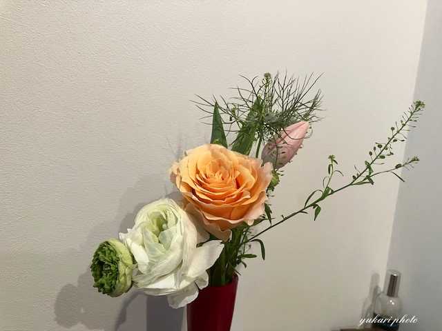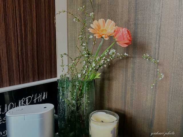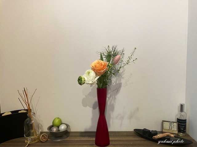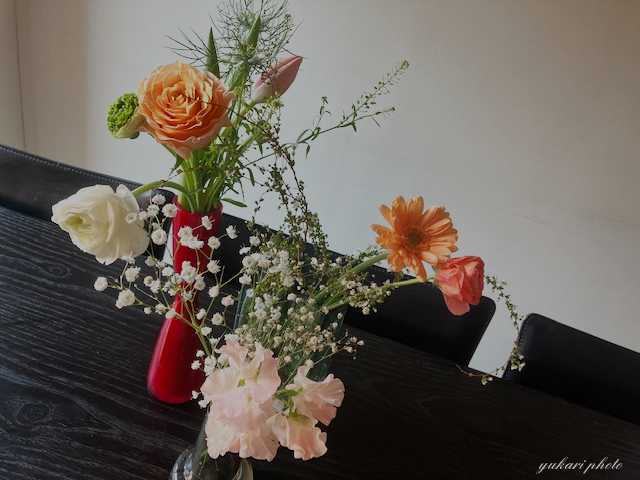 ほんとは一つの花瓶に生けた方が華やかになるんですが、家のあちこちにお花を飾りたいので、分けて生けました。