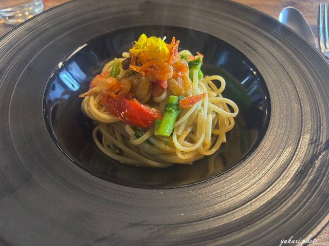 パスタかグラタンが選べるんですが、麺類好きの私はパスタを選びました。