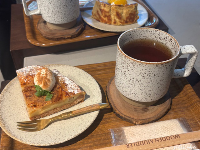 ケーキは今が旬の林檎のタルトを選び、温かい紅茶といただきました。