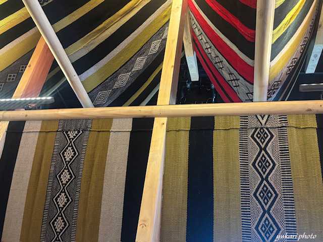 「チリ館」ではマクンという鮮やかな織物が展示されていました。