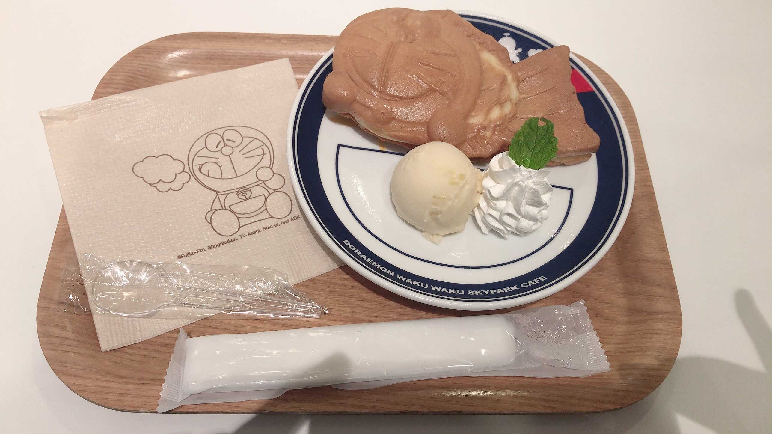 これは、飛行機での旅行の時、開いてると必ず行くドラえもんわくわくパークのカフェにあるドラえもん焼き。