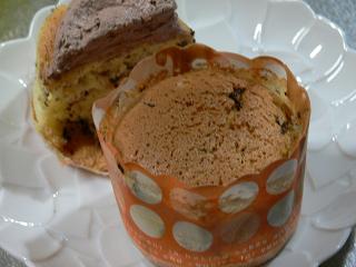 マフィンのカップでシフォンの生地を焼いてみました。チョコを削って入れてます。まあそれなりにおいしいのですがやはりシフォンって感じではありません。やっぱりシフォン型でないとあのシュァ!って感じは出なのかな~型を買うことにします。オークションで安く出てたし(笑)