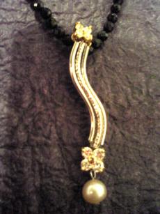 ベビーパールにオニキス 星のパールにアメジストとラインストーンで