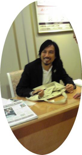 日本橋三越で開催中の田川啓二のビーズ刺繍展示会に行ってきました今回は絵画、ゴッホ、クリムト、モネの絵を刺繍で表したものと着物、訪問着や、留袖、振袖などをドレスに仕立てたものにビーズを刺繍したり着物そのものに刺繍をしたり、ビーズ、リボン、モールなど組み合わせて見事に表現していらっしゃいましたドレスそのもののもデザインが素晴らしく、その上のビーズ刺繍なので綺麗で手にとってみたい衝動に駆られるほどでしたビーズの使い方、色の重ね方、筆を持つのと同じようにビーズで絵を描いていらして、色に深みが出るように何色ものビーズを使い刺し方、並べ方またリボンやモールで華やかさを出したり表現力というのは真似ができるものではないと思いました特に今回は着物にビーズ刺繍を施すものをメイン振袖柄など生かされておりましたドレスなどは撮影禁止でしたが販売物は自由に撮れたのでアップしてみました ちょうど田川先生のサイン会に出会いましたので写メしていると画像を取っているカメラマンが寄って来て、私の撮っている写メを撮らせてくださいと言われましたのでOKしましたどんな風な画像になるのでしょう?田川先生のプライベートDVDになるのでしょうか?