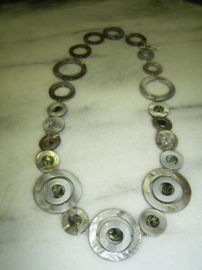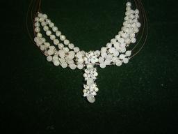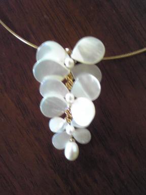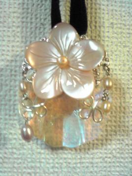今年集めたものを作りきってしまおうと思っています今日はマザーオブパールのクレオを使ってのペンダントトップまたコンクパールシェルバージョン 清楚な感じです コンクパールシェル こちらはマザーオブパールより大きく 華やかです ラリエットにもなりました