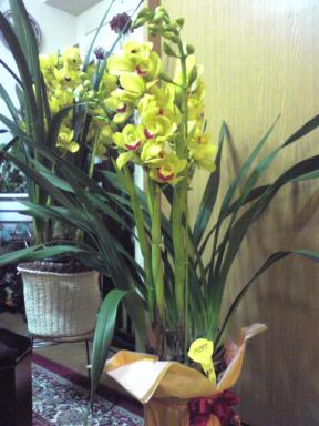 今年も後わずかとなりお教室も年内はこれが最後。クリスマスアレンジと1年有難うの感謝をこめてのお食事会同じ材料を使っても10人10色いろんなアレンジがあり、個性が出るものです細長い箱の中に真っ赤な薔薇をアレンジする、茶色のアーティスティックワイヤーは花を固定するためですが、見せる演出で個性的かつモダンなアレンジとなりました当初、目的あって用意をしていたワイヤーでしたが、真っ赤と茶の相性が良くてもとの用は達せないほど使ってしまいました写真に収めることを忘れて制作に没頭してしまったのでしたさて今日はシンビジュームを頂きました先日もお友達から黄色のシンビジュームを頂いたばかり、お部屋を少しでも綺麗に見せようと飾っておいたのですが、皆さんがお持ちのなったシンビも黄色、ダブってしまったと気にされてしまった友人、ごめんなさい!金運がよくなるように西に飾ってくださいとのお言葉、従わなくてはと思う昨今です色は同じでも形が綺麗だし、部分的には似てはいるのですが今日のほうが花振りがいいように思います本当に有難うございます