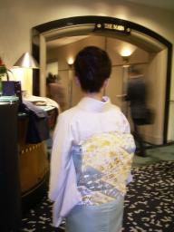 12月6日 結婚式に参列してきました(神田うのちゃんと同じホテル)結婚式10:30~では美容室8:00と言うので、朝起きれない私はホテルに主人と泊り込み美容、着付け最近では珍しく神殿式で雅楽の音とともに厳かにとりおこなわれお二人は目出度くご夫婦として神様に誓ったのでした白無垢がとってもお似合いで、お婿さんは羽織、袴で凛々しくお似合いの二人披露宴での色打ち掛け、衣裳の係りの方に貴方ほどこの打ち掛けが似合う方はいないといわせたほど、本当によく似合っていました私たちはこのような姿で列席です真中、ビーズのバッグを持ち、ペパーミントグリーンとシルバーグレーの染め分け訪問着を着ているのがトレジョリ2000です残念ながらバッグに隠れ模様が良く見えませんねこのように足元アップしてみると、立ち方を気をつけないといけませんねとってもシンプルで上品で、ゆっくりお食事が出来た披露宴でした