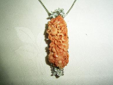 珊瑚の帯止めのリフォームを昨年の桜のころ依頼され、その後母の具合が悪くなり遅れ遅れになってしまった。やっと出来上がった、あまりに珊瑚の彫が立派なのでシンプルに仕上げるのが一番、でもちょっとおしゃれに、そんな気持ちで・・・・・・・・